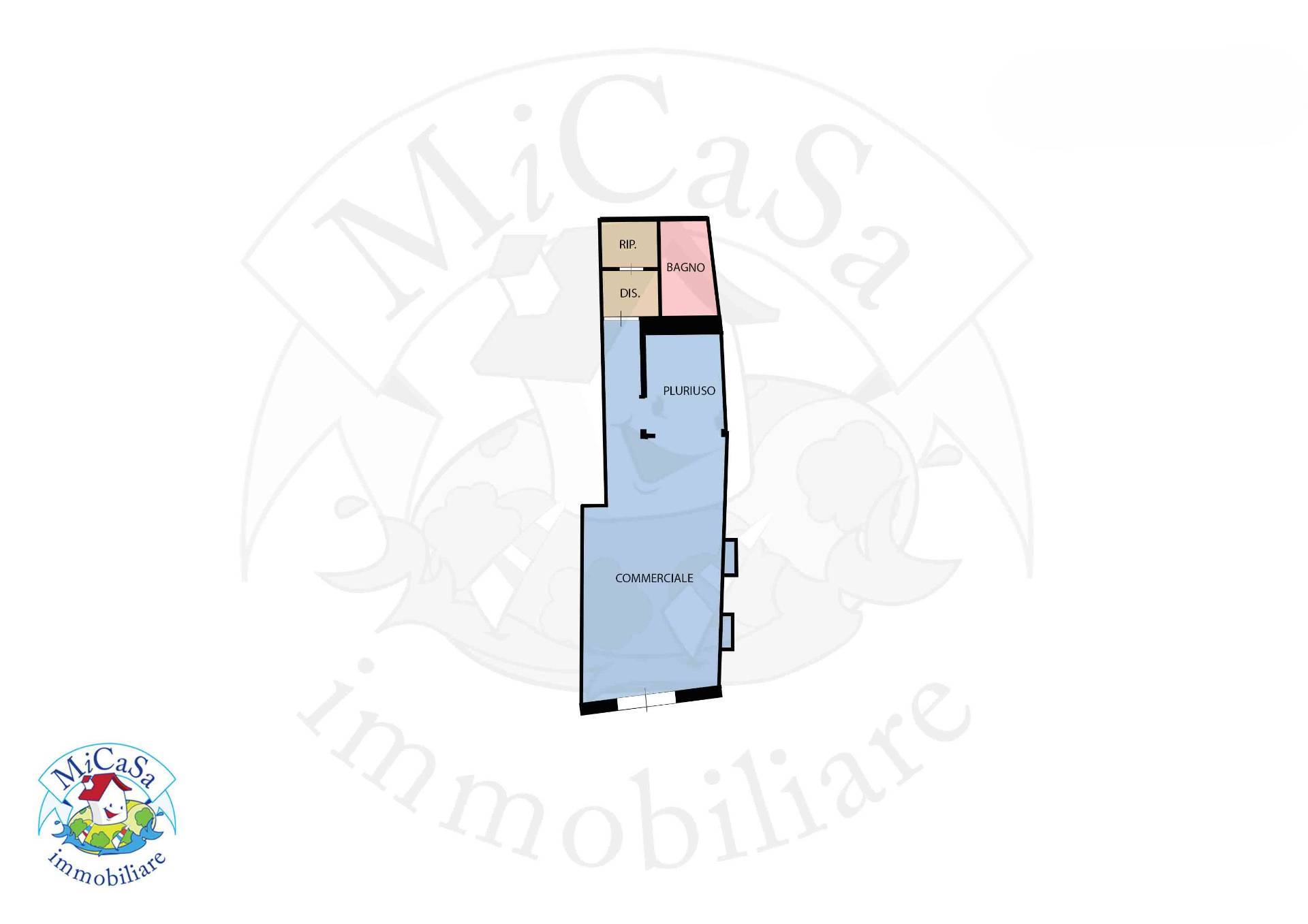 In posizione centrale con forte passaggio pedonale e veicolare, interessante fondo commerciale di 52 mq, ideale per un'attività commerciale o come ufficio/studio - Rif. 2609c