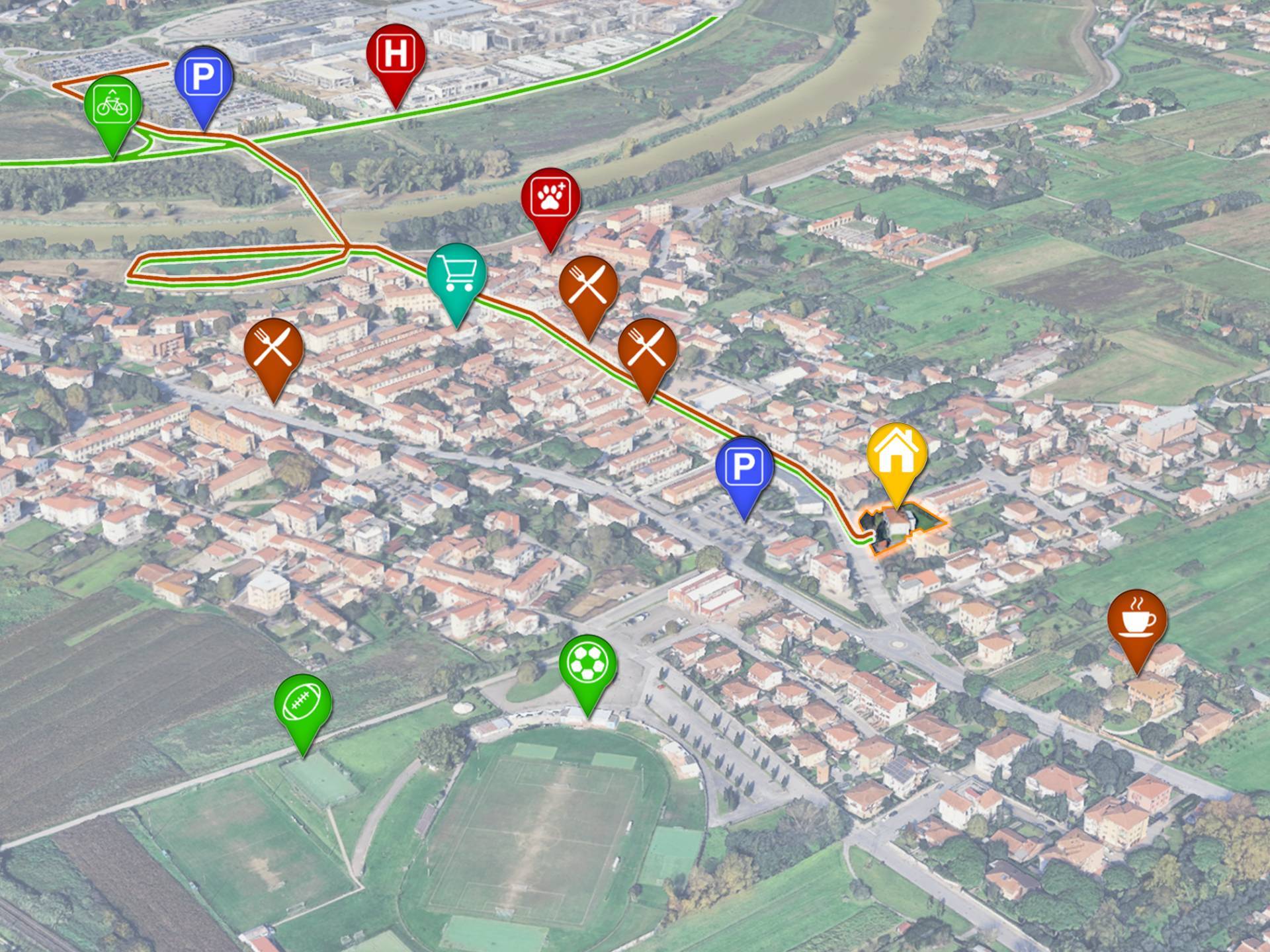 L’immobile è situato in una zona strategica e ben servita, caratterizzata dalla presenza di numerosi servizi e collegamenti comodi. Grazie a un ponte ciclopedonale, è possibile raggiungere in bicicletta l’Ospedale di Cisanello e la zona delle Piagge, una delle aree più apprezzate della città.
