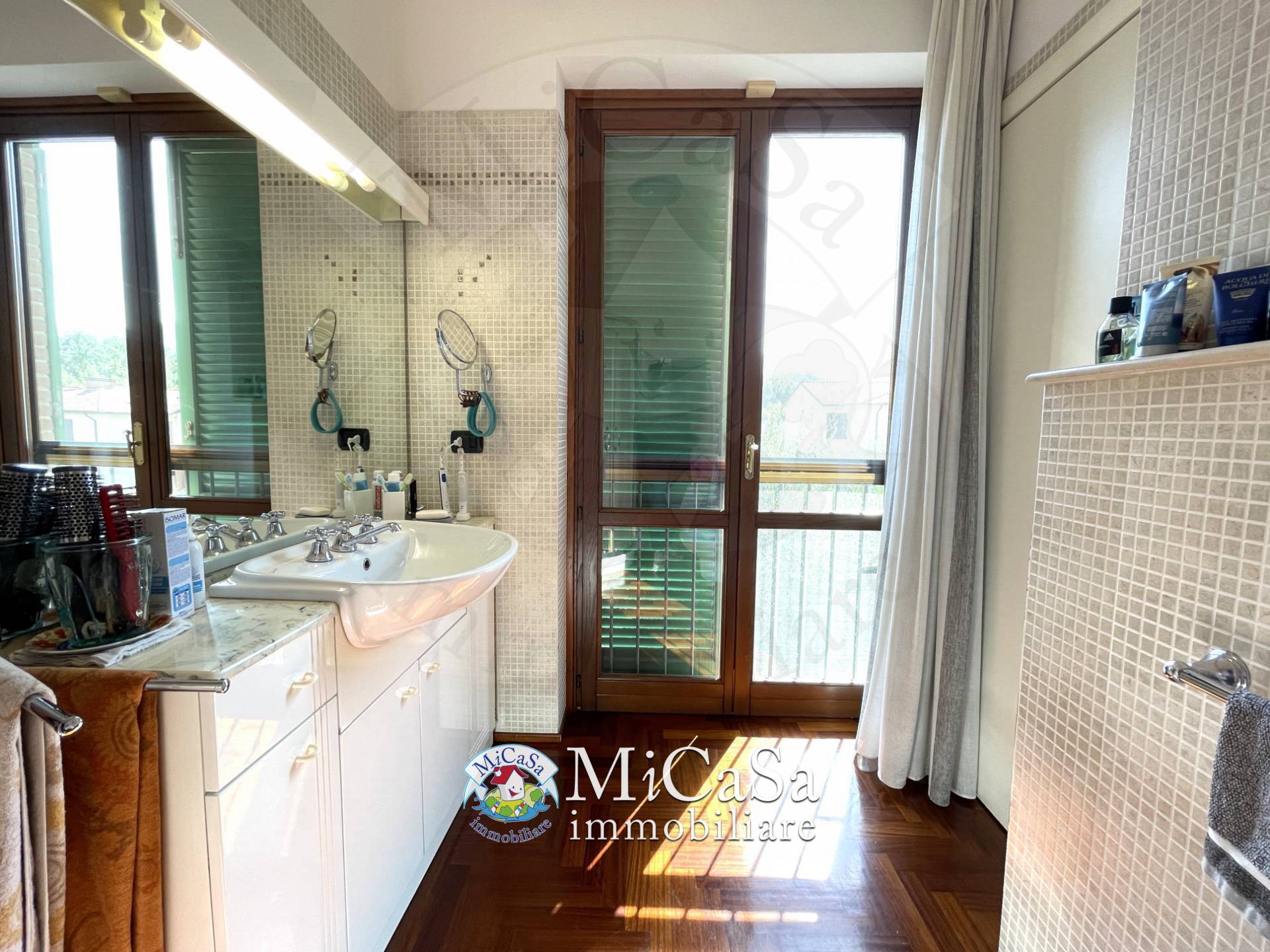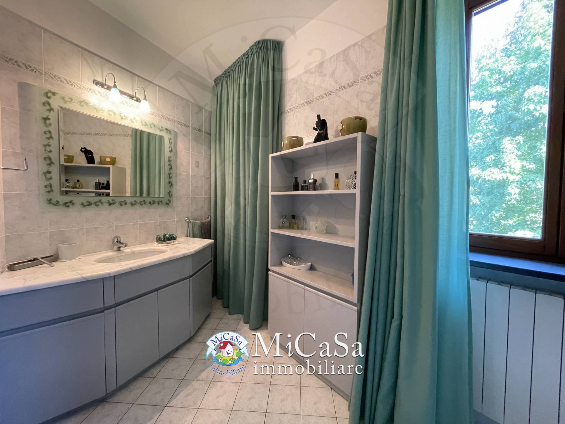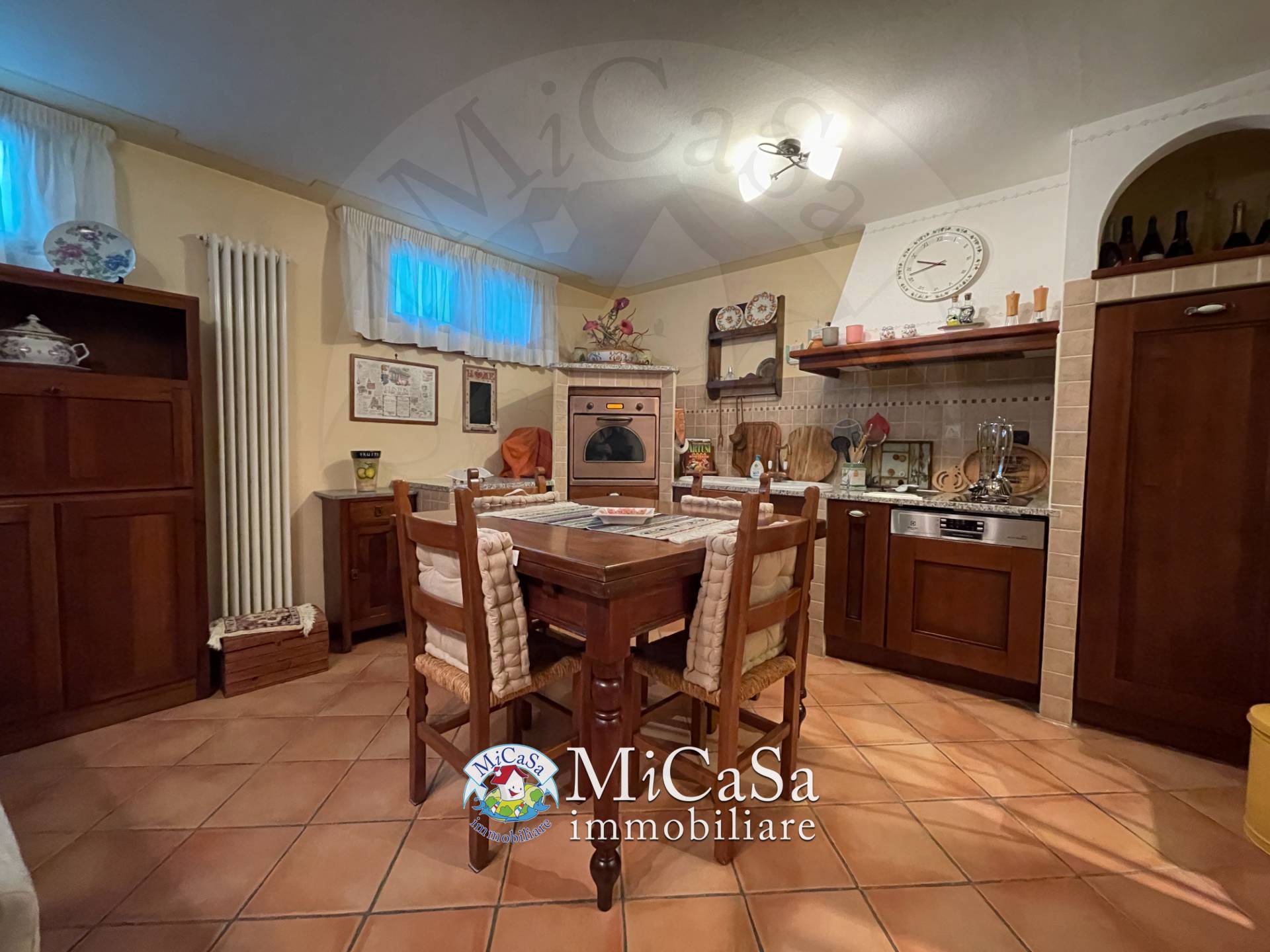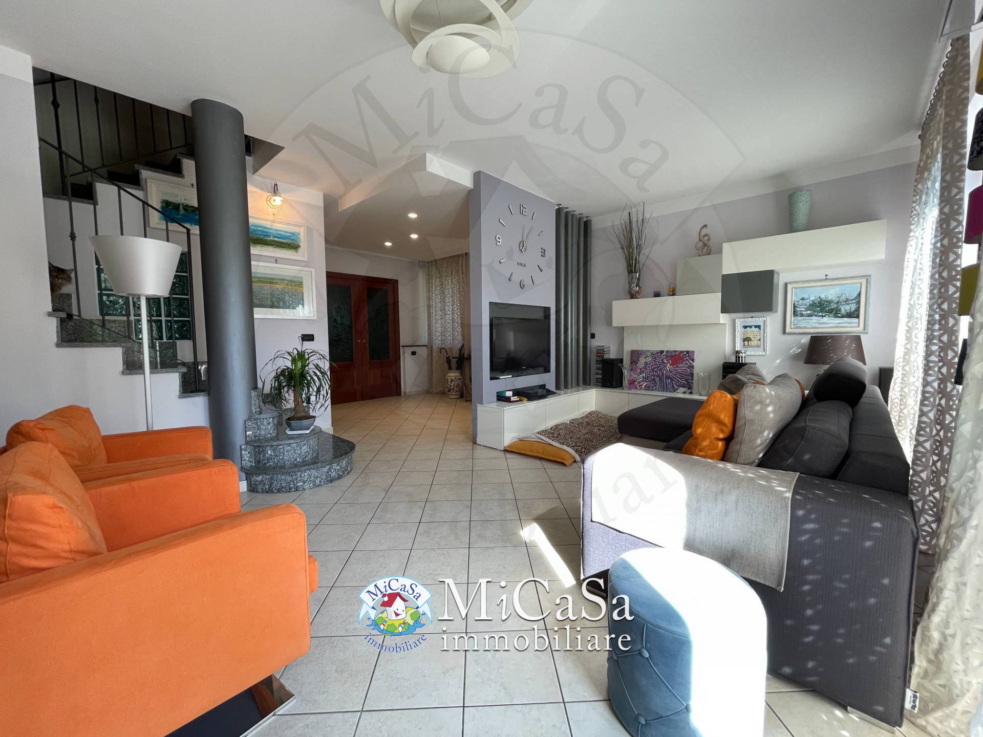 La villa è composta internamente da ampio ingresso, salone, cucina abitabile con ripostiglio/lavanderia e bagno completo di doccia a servizio del piano terra. Scendendo al piano seminterrato troviamo la grande taverna attualmente utilizzata come ulteriore zona giorno dotata anche di cucina completa in finta muratura, oltre a due ulteriori vani utilizzati come palestra/studio e cantina/dispensa. La zona notte al primo piano è composta da tre camere, di cui una adibita a cabina armadi e una matrimoniale con bagno in camera completo di doccia e finestra. Al piano superiore ampia mansarda di mq utile come studio.