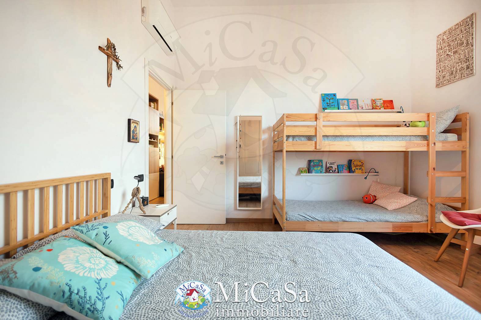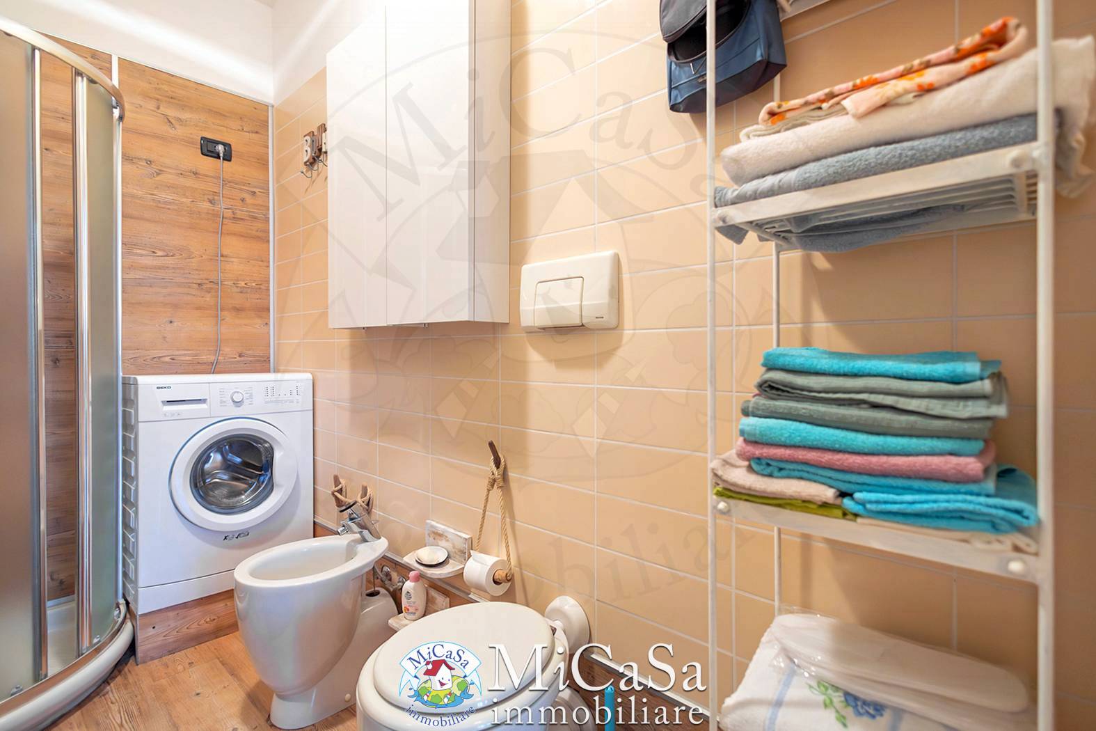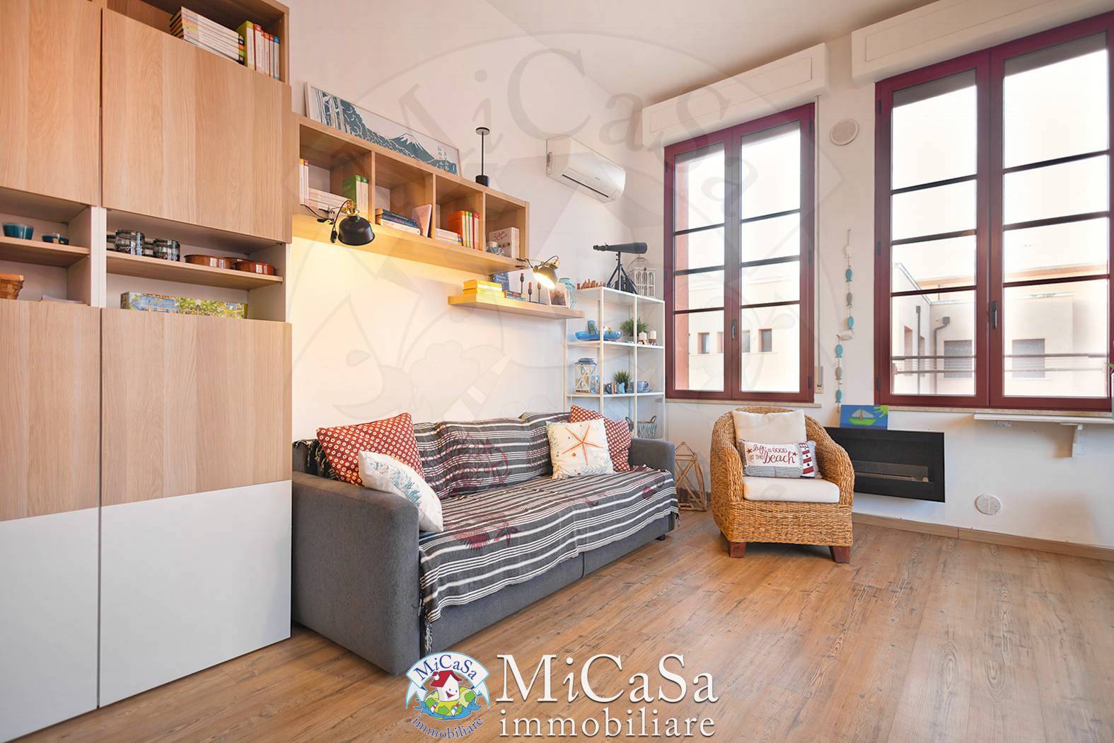 L’immobile, venduto completamente arredato, si compone di ingresso, ampio soggiorno di circa 29 mq con angolo cottura e grandi finestre vista mare, luminosa camera matrimoniale, bagno moderno con box doccia; completano la proprietà un posto auto scoperto.