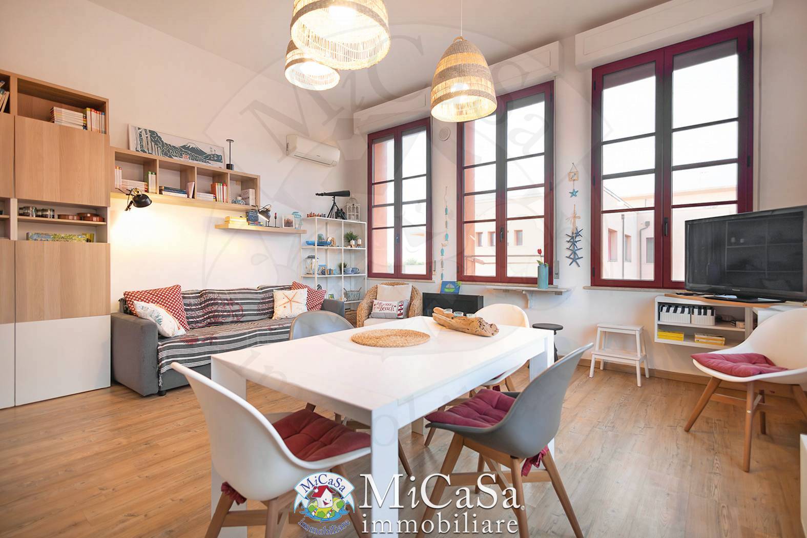 In posizione unica, proponiamo in esclusiva un elegante Appartamento fronte mare, situato al secondo piano di un’affascinante ex colonia con accesso diretto alla spiaggia e meraviglioso giardino condominiale in stile mediterraneo.
