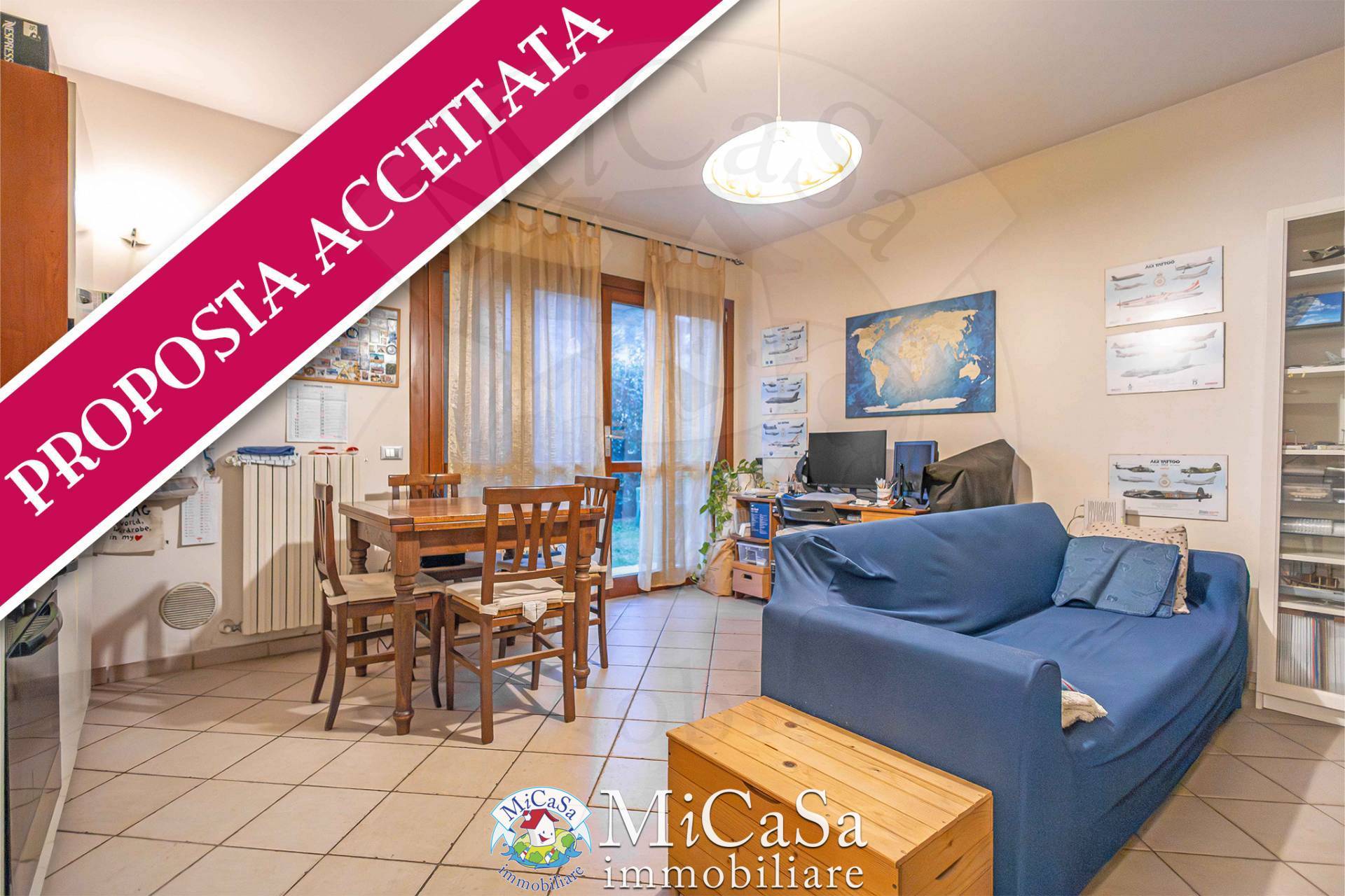 In ottimo contesto residenziale, tranquillo e riservato, troviamo questo grazioso bilocale posto al piano terra di piccolo condominio costruito nel 2010, composto internamente da soggiorno con angolo cottura e accesso al curato giardino di 100mq, camera matrimoniale e bagno con doccia e finestra. Completa la proprietà il posto auto all'interno del giardino a cui si accede da cancello carrabile, predisposto per essere automatico.