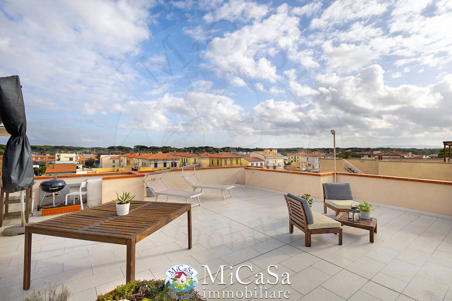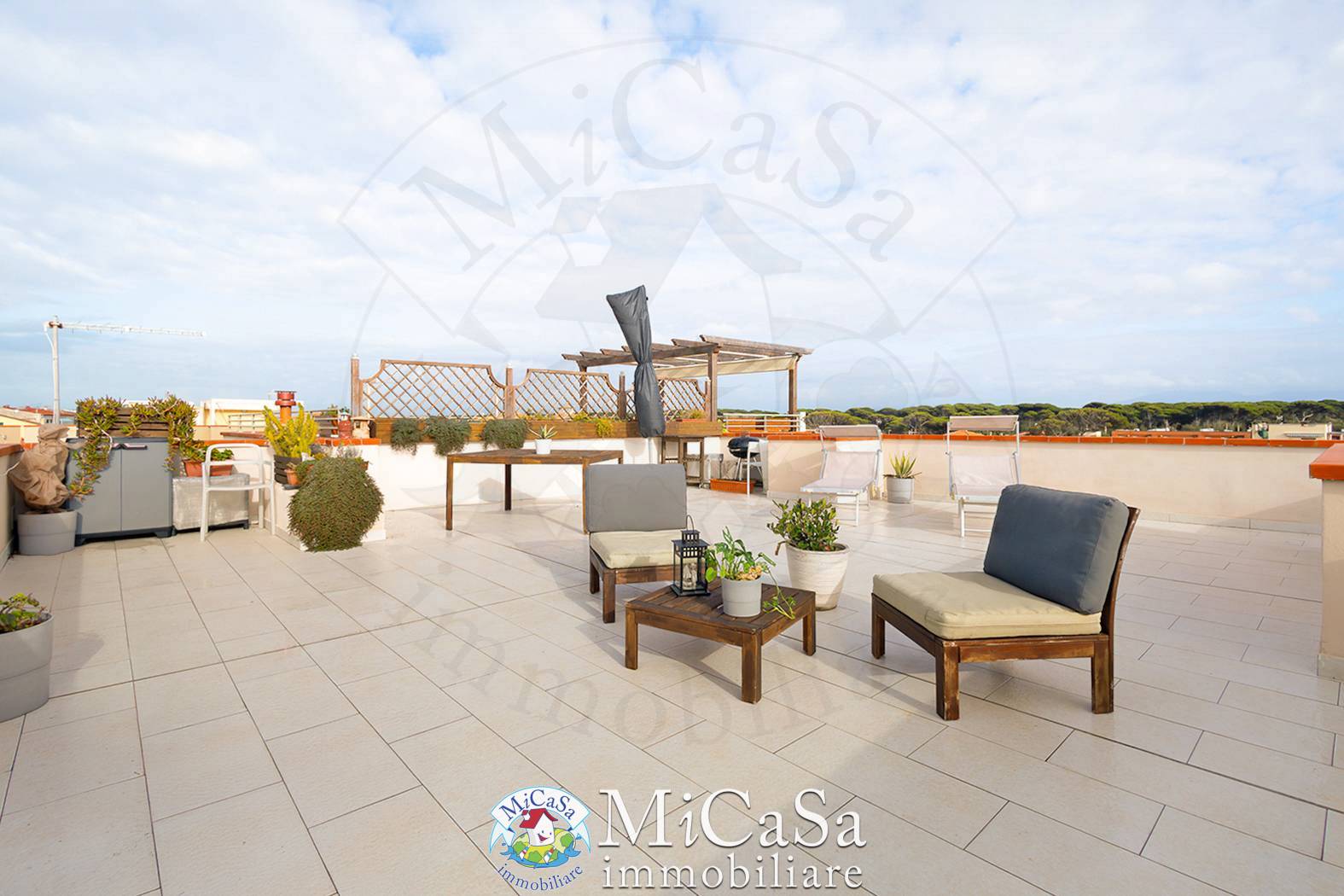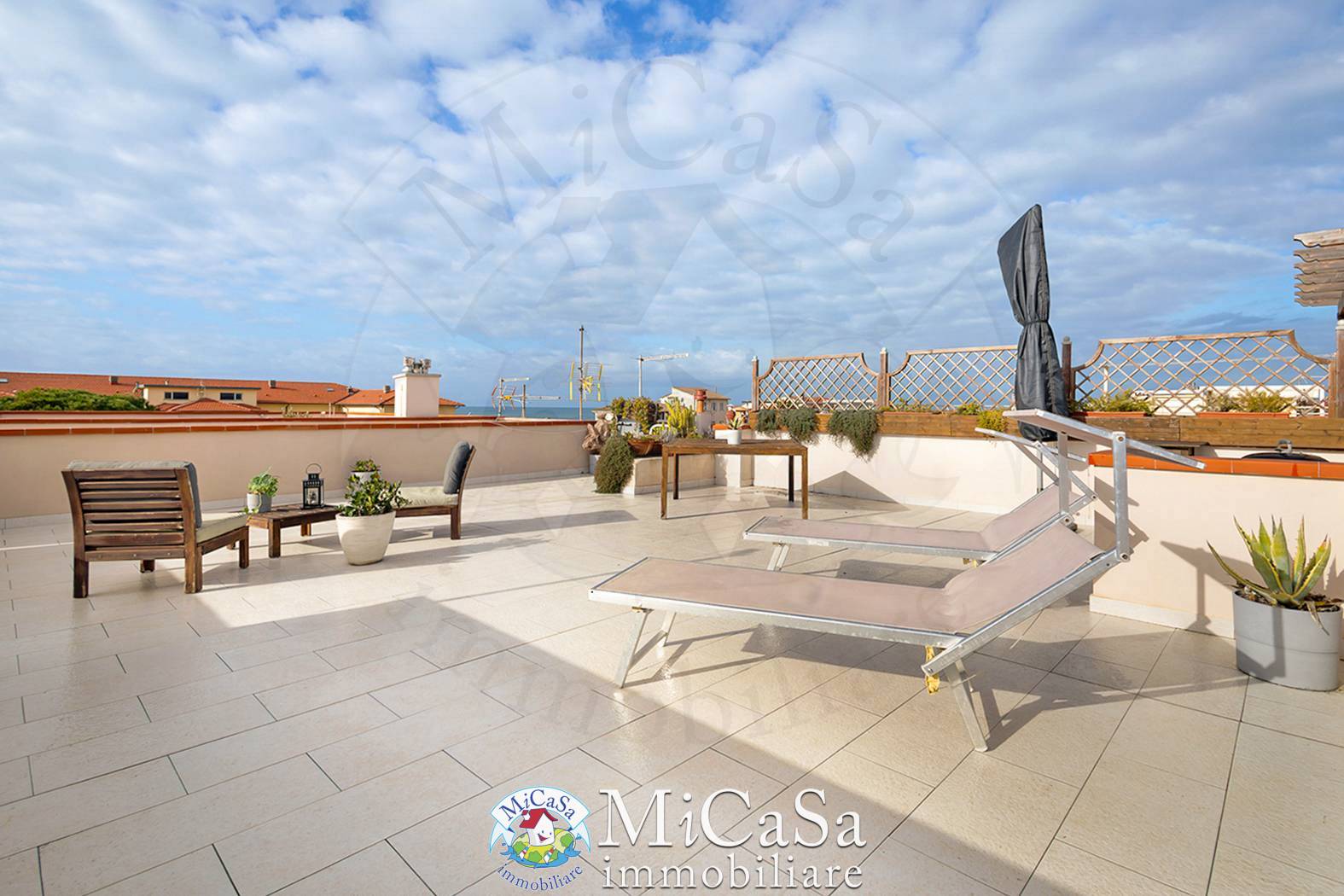 Rif. 2681 – MARINA DI Pisa (PI) – NOSTRA ESCLUSIVA – ATTICO CON SPLENDIDA VISTA MARE!!!! pochi passi dal mare, proponiamo in esclusiva luminoso attico situato al secondo piano di un elegante e riservato condominio composto da sole 11 unità abitative. L’Appartamento si apre su un accogliente soggiorno con angolo cottura ed è composto da due camere da letto (una matrimoniale e una singola) e da un ampio bagno finestrato con box doccia. Le finiture sono di ottimo livello: parquet in tutti gli ambienti, aria condizionata, infissi in legno con doppio vetro, tapparelle manuali e riscaldamento autonomo. Esclusivo lastrico solare di circa 66 mq, perfetto per cene all’aperto e momenti di relax, con una splendida e suggestiva vista mare. Completano la proprietà garage privato, posto auto scoperto e giardino condominiale. L’immobile è stato completamente ristrutturato nel 2020, mentre facciate e tetto sono stati rifatti nel 2025, garantendo ottime condizioni generali e massima tranquillità nel tempo. Spese condominiali contenute: circa € 80,00 mensili. Soluzione ideale come abitazione principale, casa vacanze o investimento, grazie alla posizione strategica e alle caratteristiche esclusive. Per maggiori informazioni o per prenotare una visita, contattaci indicando il Rif. 2681. L’indirizzo riportato è puramente indicativo e non corrisponde alla reale ubicazione dell’immobile. Visita il nostro sito www.micasa.it